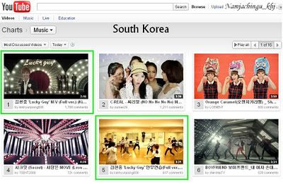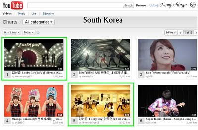 Los dos recientes videos de Kim Hyun Joong (Lucky Guy MV y el video de la coreografía) se encuentran en los primeros puestos de los rankings de Youtube, el ranking de todo el mundo y en de Corea del Sur ~