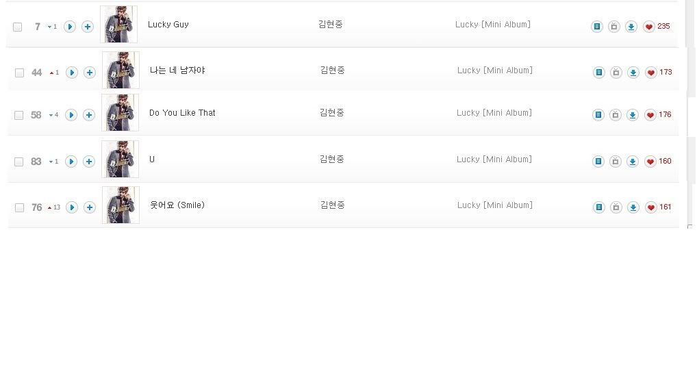Todas las canciones del album de Kim Hyun Joong, Lucky, se encuentran en el ranking de Soribada