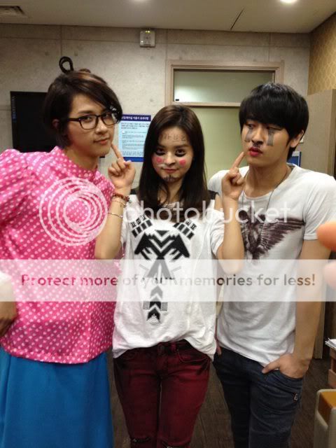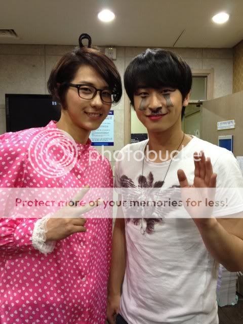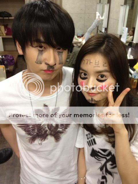 Los dos estan actualmente grabando el sitcom de KBS2 "I Need a Fairy", y en la foto aparecen con un aspecto muy malo, con un excesivo maquillaje por todos lados, como si estuviesen enfermos o mal y arruinando su imagen, provocando muchas risas.