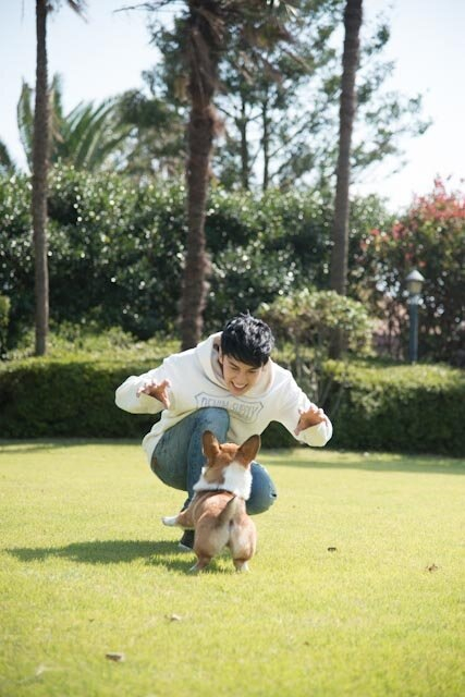 Competición de fuerza con JeomReah en Jeju Island!! ella ladró 'mung! Mung!' cuando me vio y movia su cola y yo pensaba que eso queria decir que le gustaba verme, y que estaba feliz de verme, pero en realidad queria decir 'soy mejor que tu'. En idioma de perros~~!! los significados~~! Yo soy el mejor!!